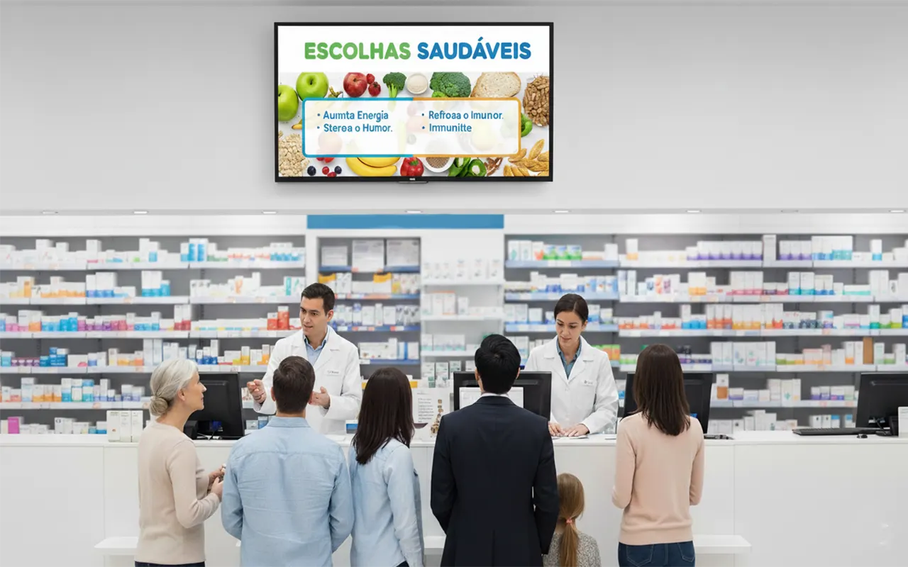 Comunique de forma diferenciada em locais como salas de espera, lobbys, em espaços comerciais ou públicos, com elevado fluxo de pessoas.